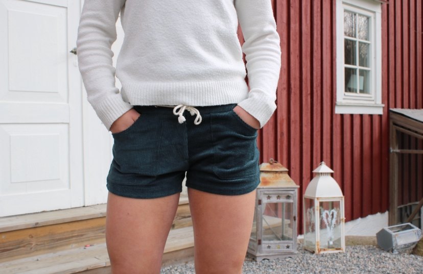 Shortsen har gylf og knyting i livet med to lommer foran og en baklomme. Shortsen er laget i kord stoff med litt stretch, så langt er den kun tilgjengelig i størrelsen (Xs/S)